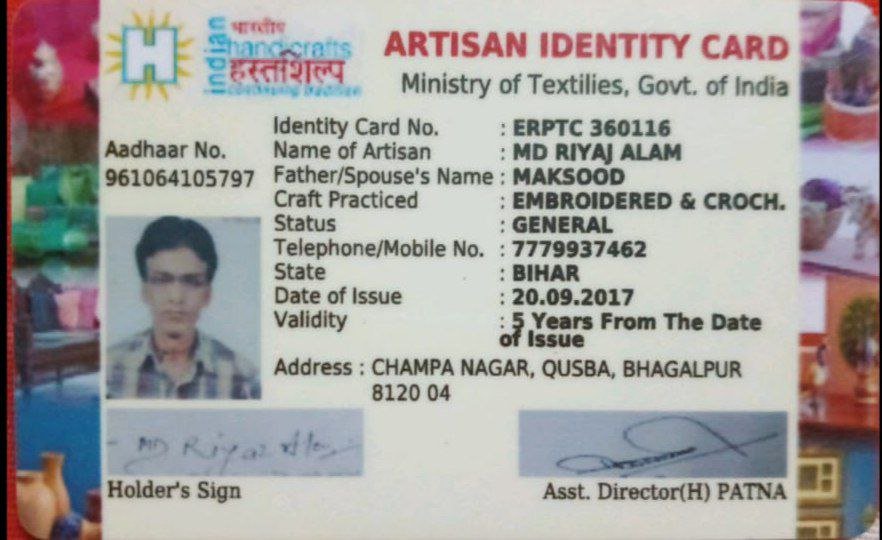 Artisan Card No /Udyam Reg NoERPTC 360116