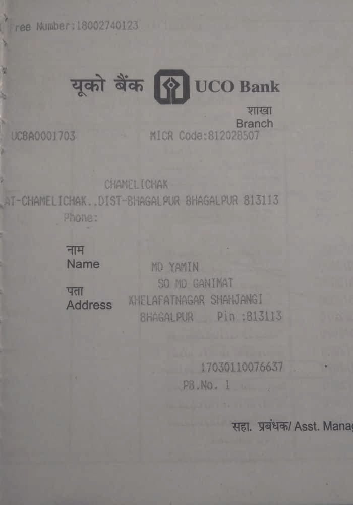 Upload Front Page of Passbook containing account detailsUpload Front Page of Passbook containing account details