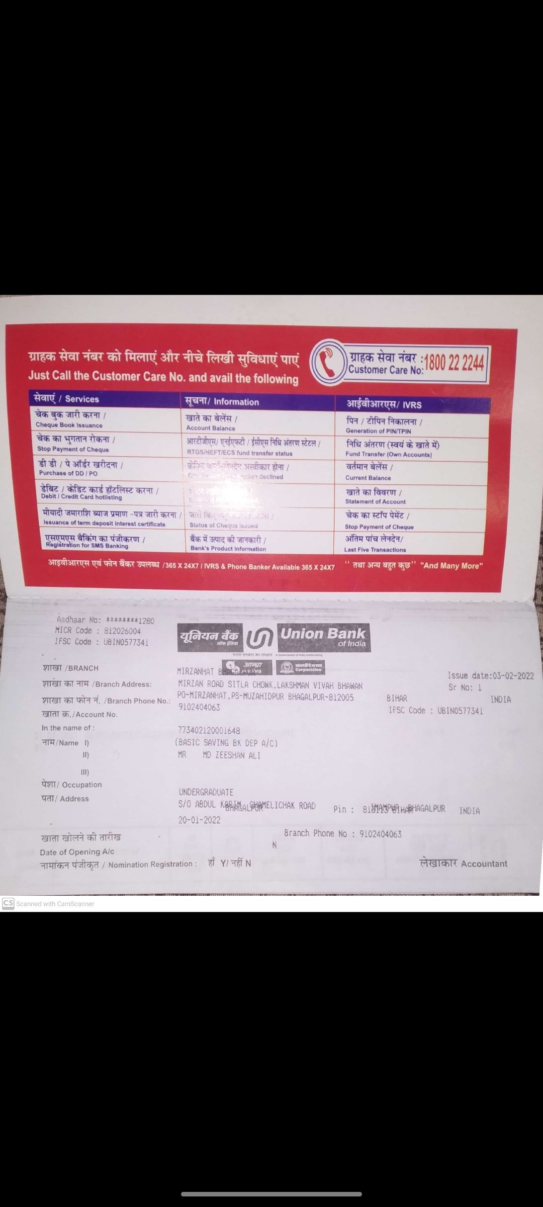 Upload Front Page of Passbook containing account detailsUpload Front Page of Passbook containing account details
