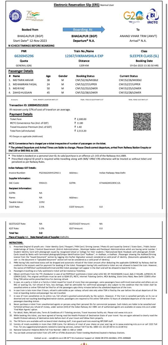 Upload Railway Ticket CopyUpload Railway Ticket Copy