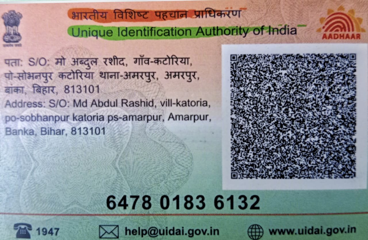 Aadhar No.6478-0183-6132