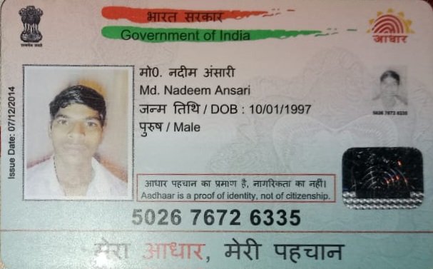 Aadhar No.5026-7672-6335