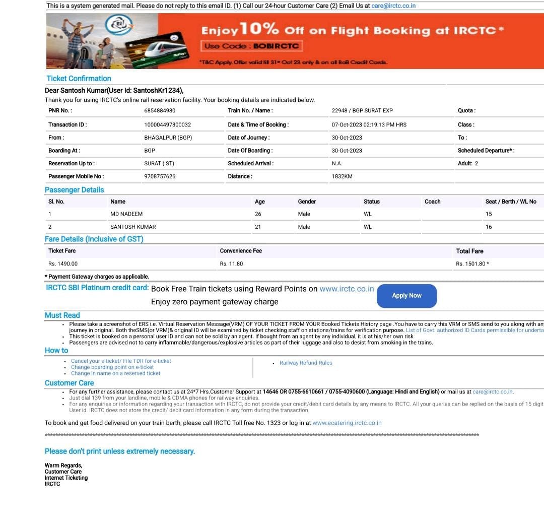 Enter PNR No of your Railway Ticket6854884980