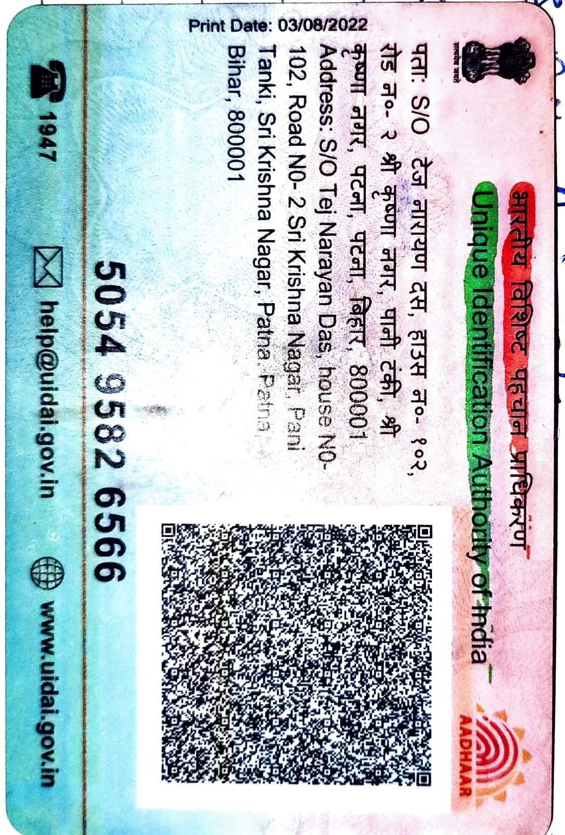 Complete Address (As per Aadhar)102, SRI KRISHNA NAGAR, ROAD NO. 02, NEAR PANI TANKI SRI KRISHNA NAGAR PATNA