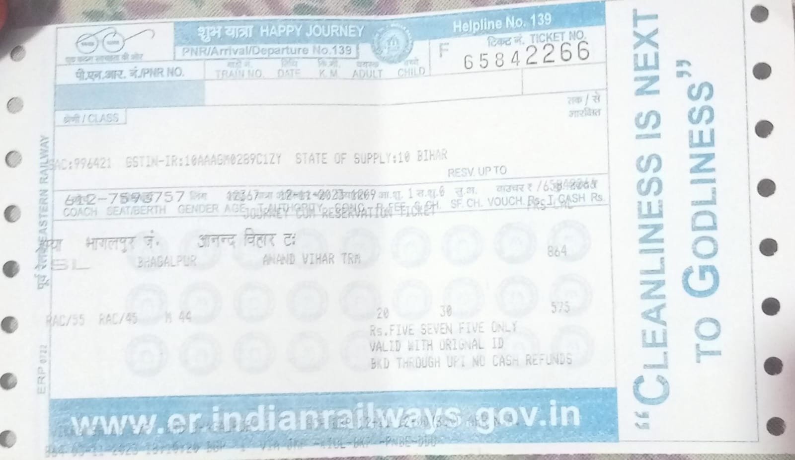 Enter PNR No of your Railway Ticket6127593757