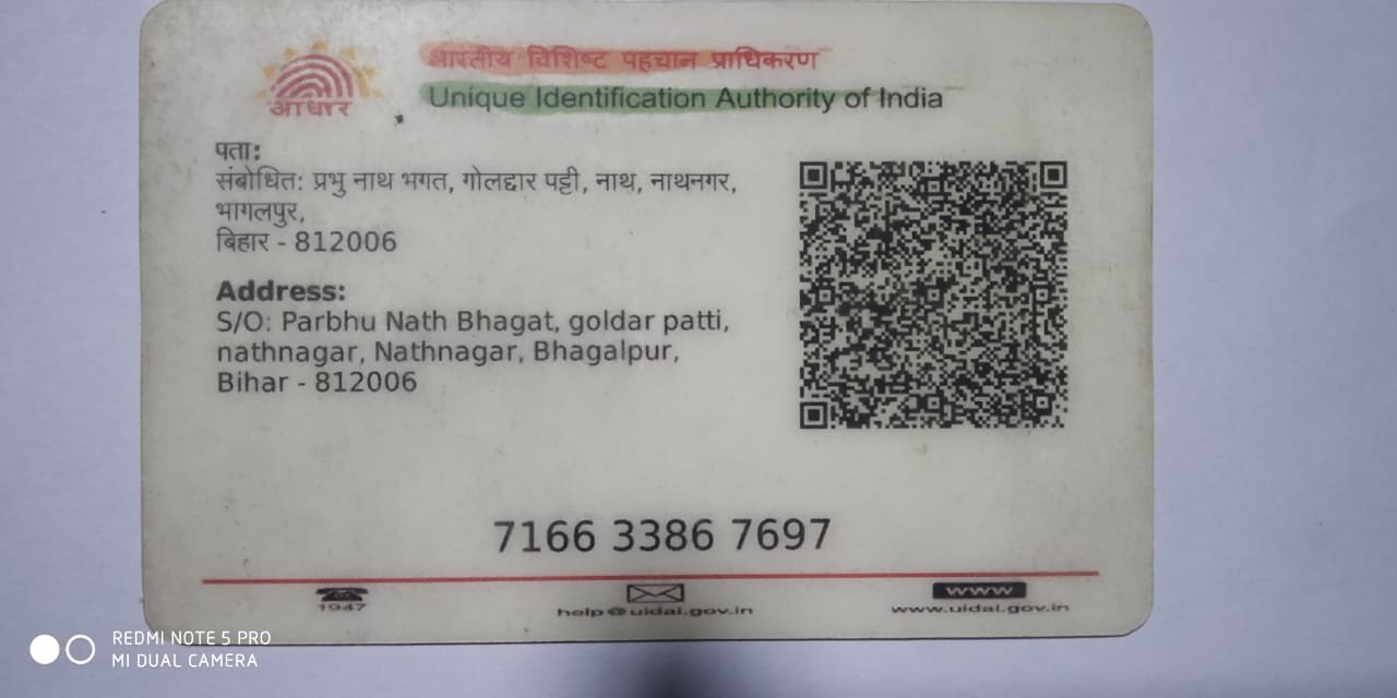 Complete Address (As per Aadhar)Goldarpatti Nathnagar Bhagalpur