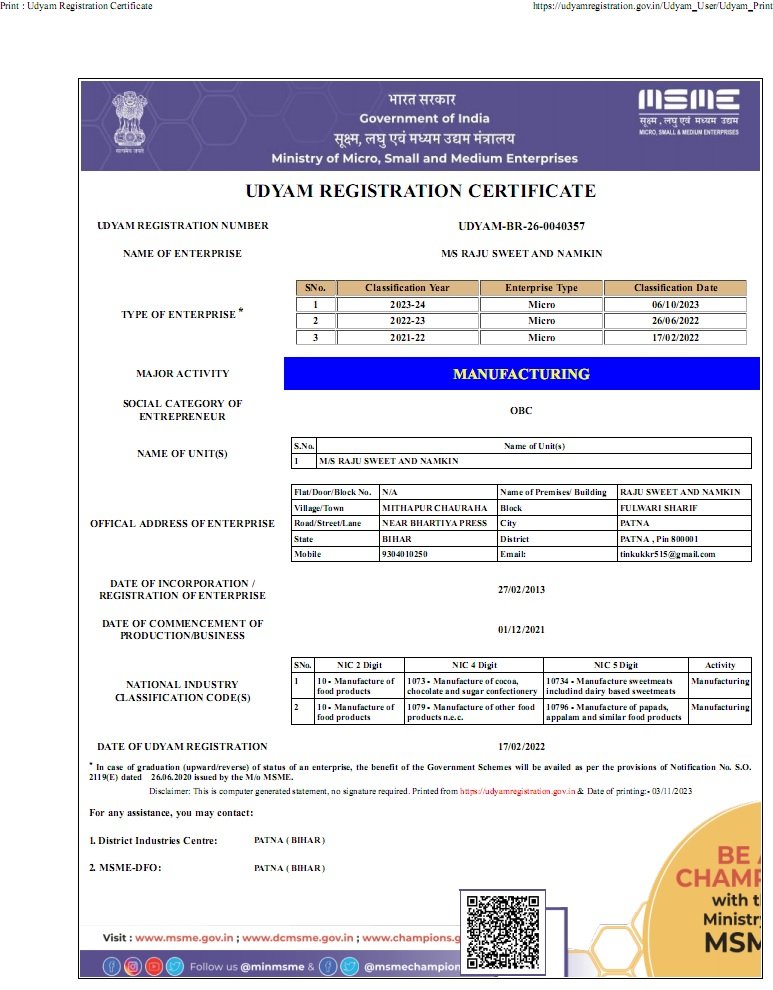 Enter your Business NameM/S RAJU SWEET AND NAMKIN