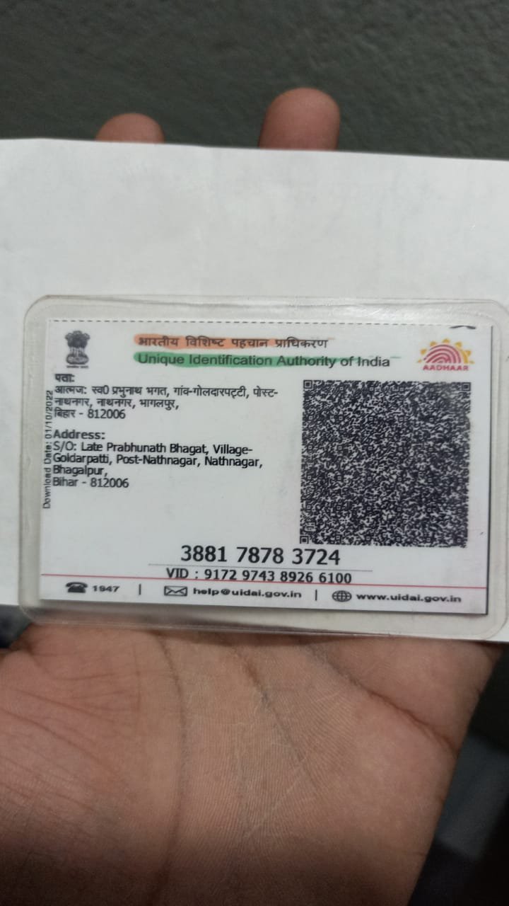 Complete Address (As per Aadhar)Goldarpatti Nathnagar Bhagalpur