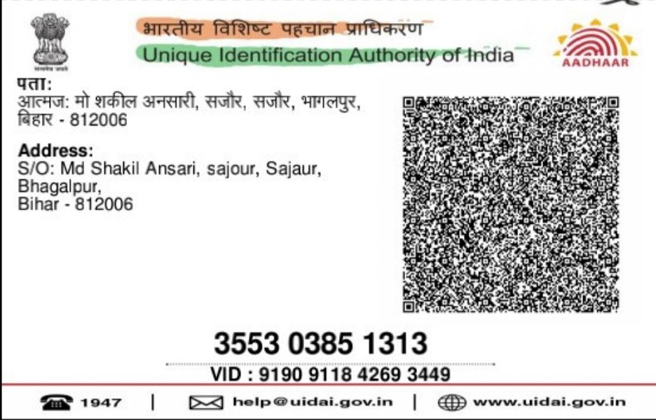 Complete Address (As per Aadhar)PO+PS SAJOUR DISTRICT BHAGALPUR BIHAR