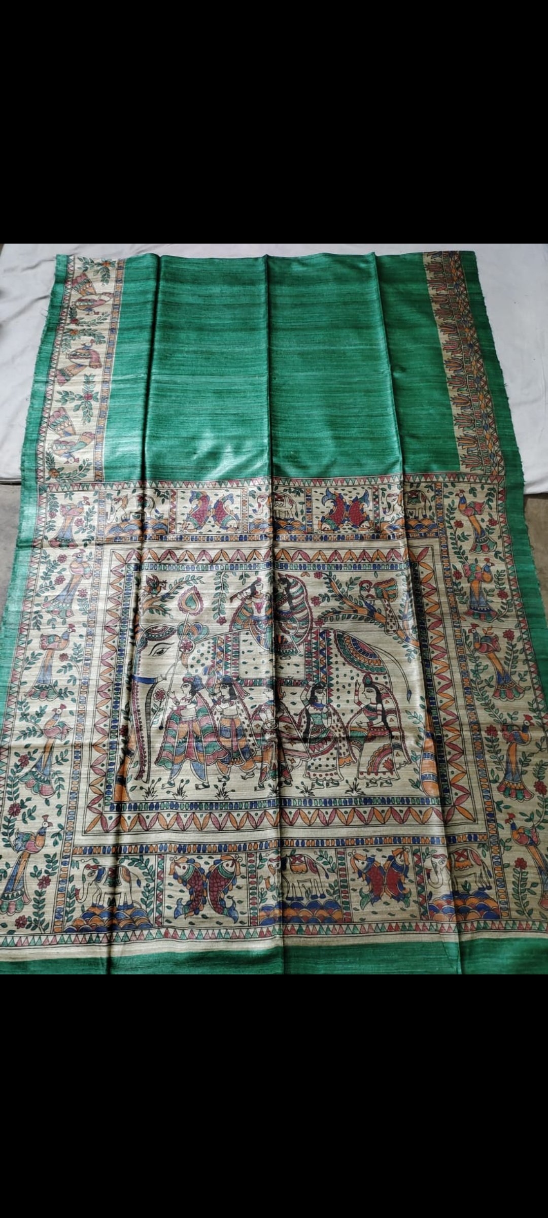 Enter Your Product Detail to be displayed in IITFMADHUBANI HAND PRINT SAREES TASSAR TASSAR FABRICS SILK SUIT