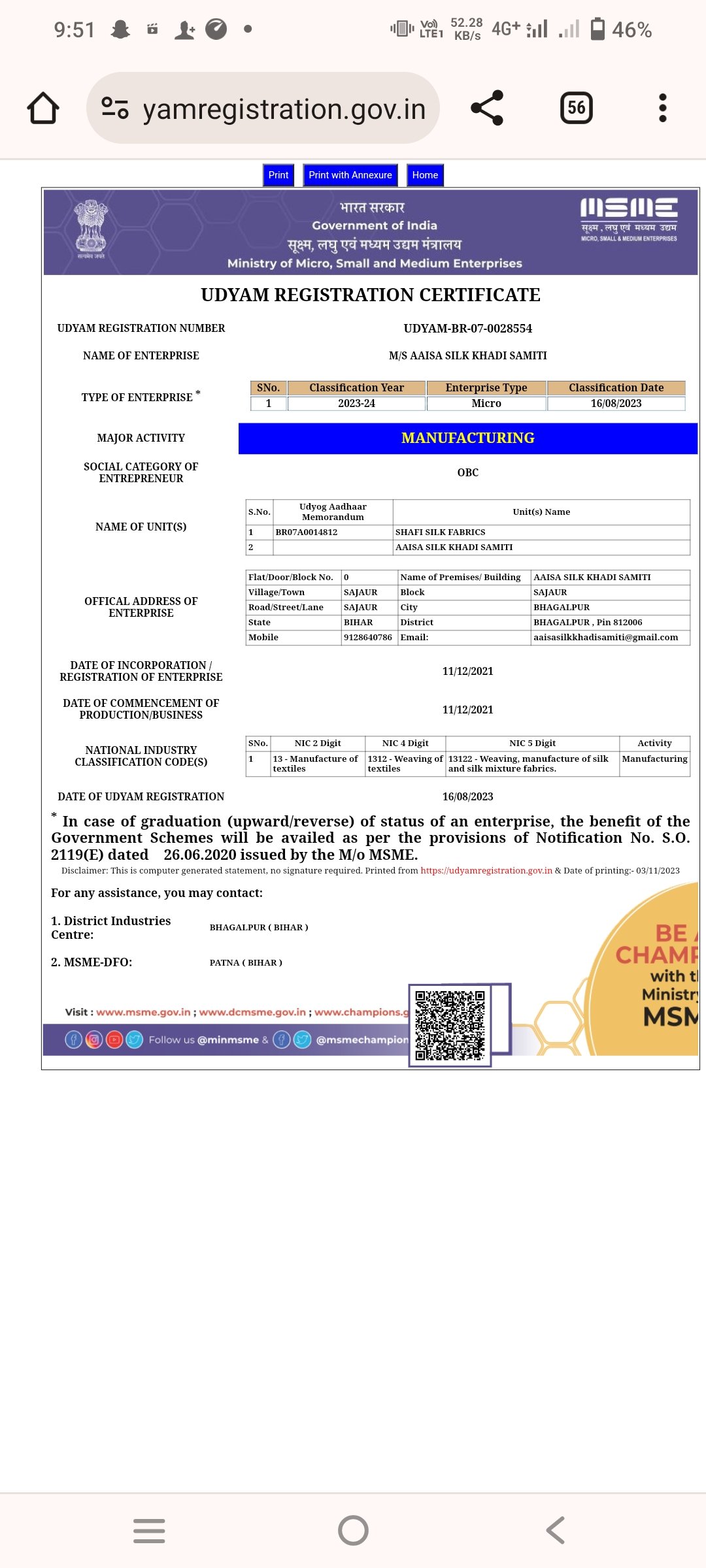 Enter your Business NameAAISA SILK KHADI SAMITI