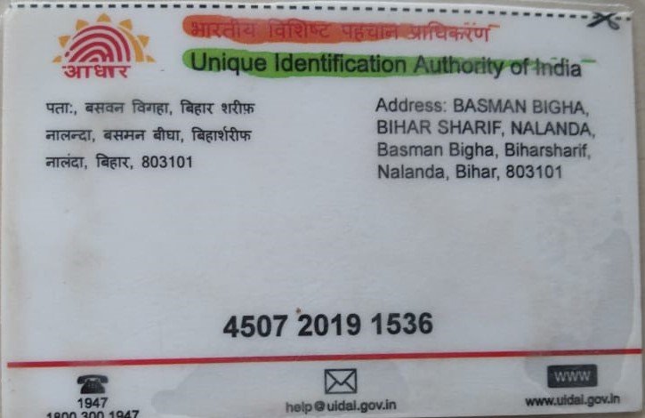 Complete Address (As per Aadhar)VILL- BASMAN BIGHA P.O+P.S- BIHAR SHARIF DIST- NALANDA