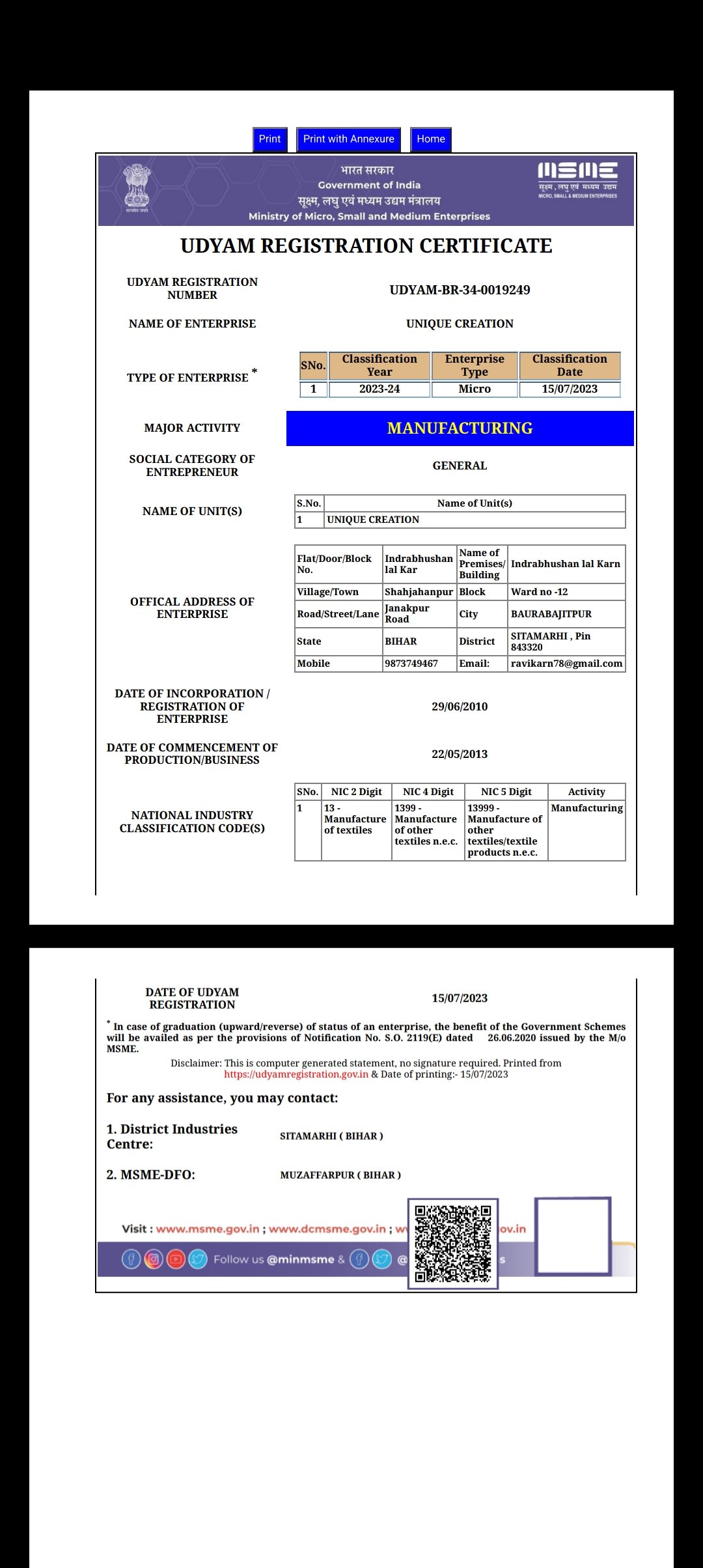 Upload Business Registration Document (For eg:- MSME Reg certificate for MSME unit/ Startup Certificate for Startups) (In case of artisans/weavers kindly upload artisan/weaver card copy)Upload Business Registration Document (For eg:- MSME Reg certificate for MSME unit/ Startup Certificate for Startups) (In case of artisans/weavers kindly upload artisan/weaver card copy)