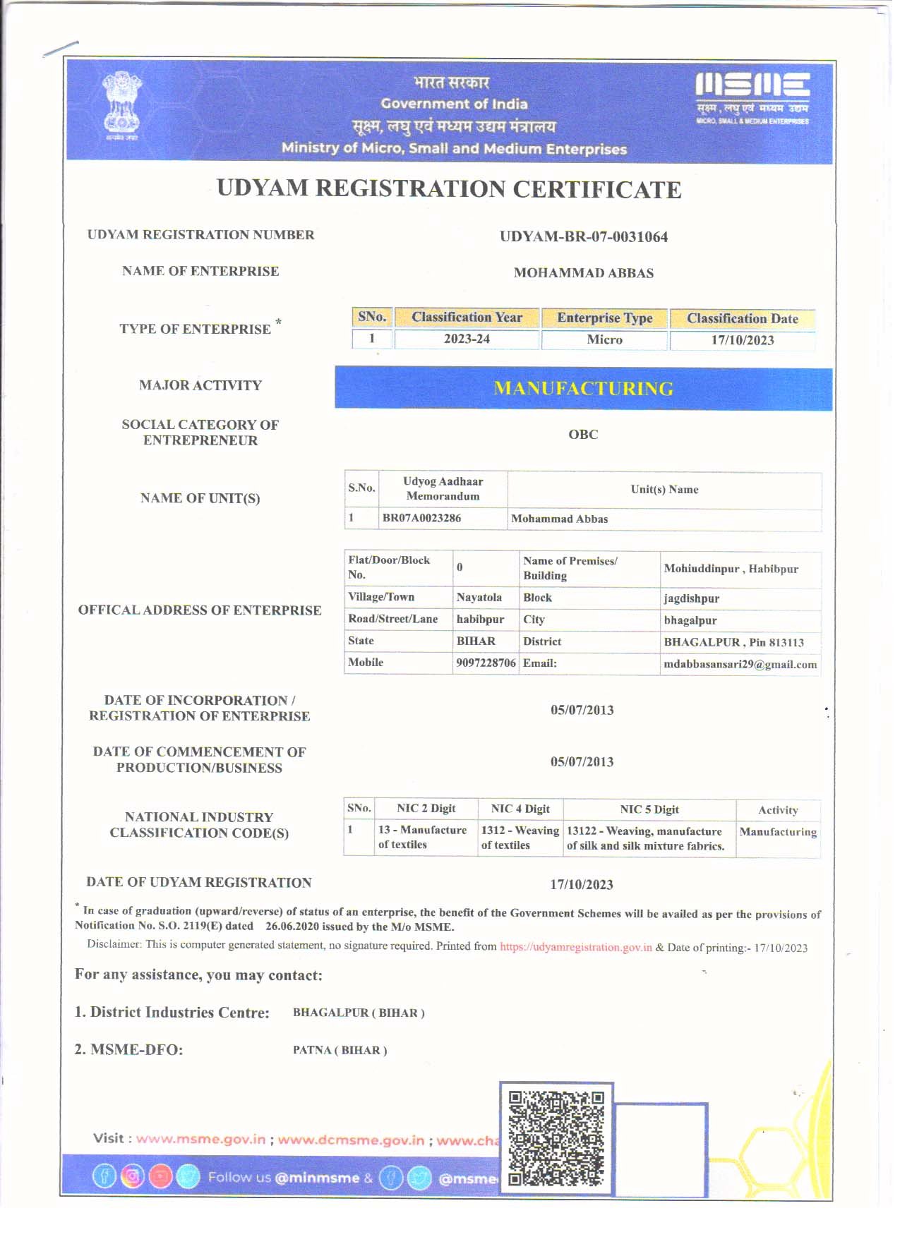 Upload Business Registration Document (For eg:- MSME Reg certificate for MSME unit/ Startup Certificate for Startups) (In case of artisans/weavers kindly upload artisan/weaver card copy)Upload Business Registration Document (For eg:- MSME Reg certificate for MSME unit/ Startup Certificate for Startups) (In case of artisans/weavers kindly upload artisan/weaver card copy)