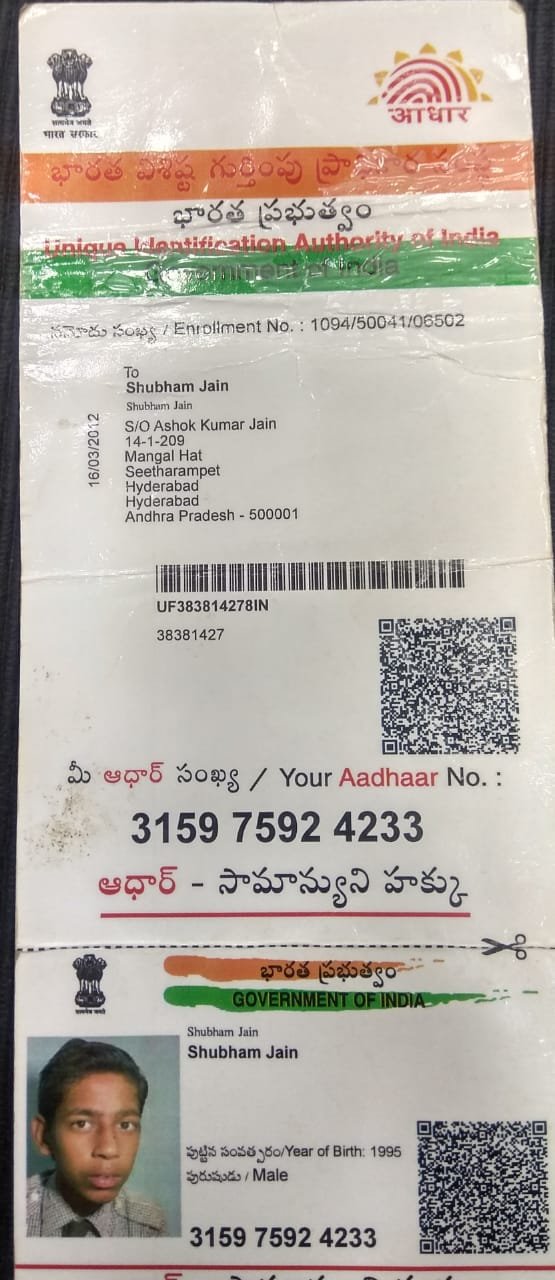 Complete Address (As per Aadhar)14-1-209 MANGALHAAT SITARAMPET
