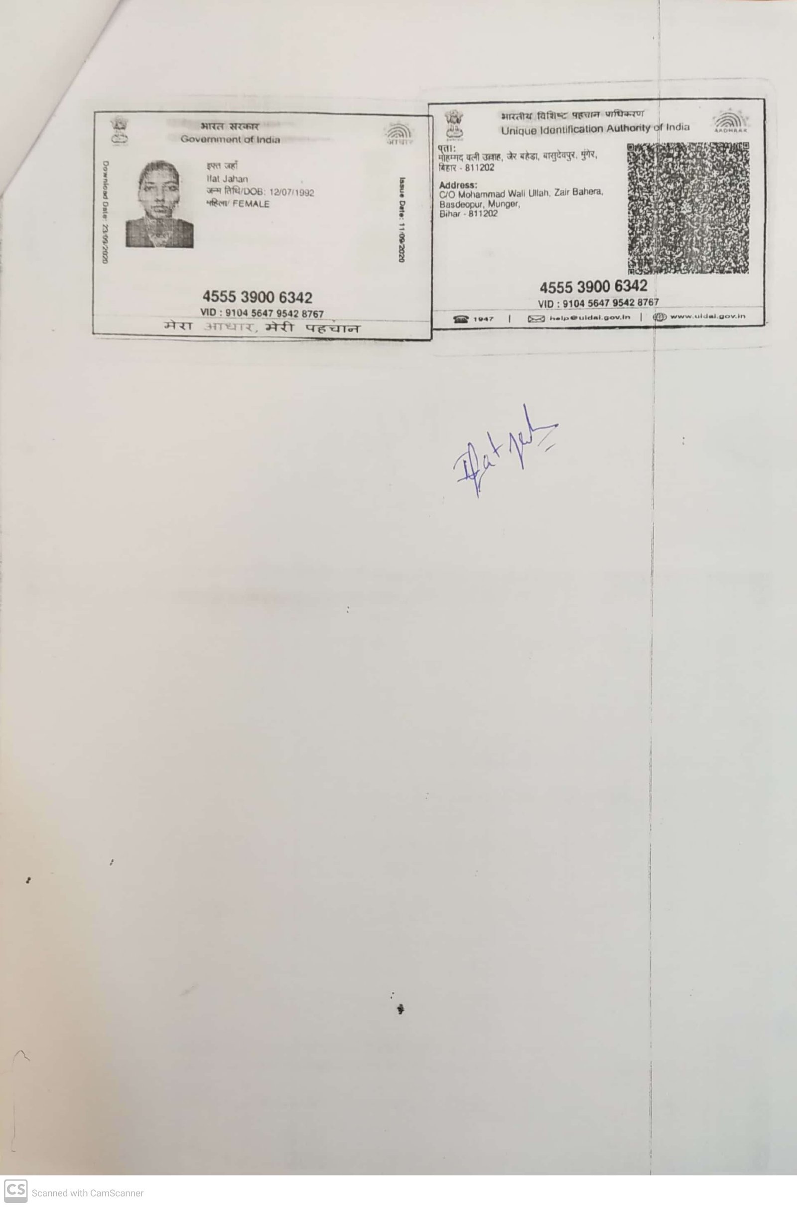 Complete Address (As per Aadhar)Zairbahera Basudeopur Munger