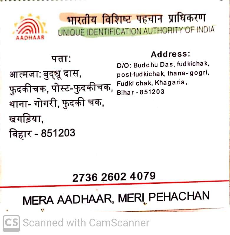 Aadhar No.2736-2602-4079