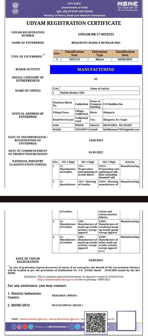 Enter your Business NameBHAGWATI MAHILA BUNKAR SHG
