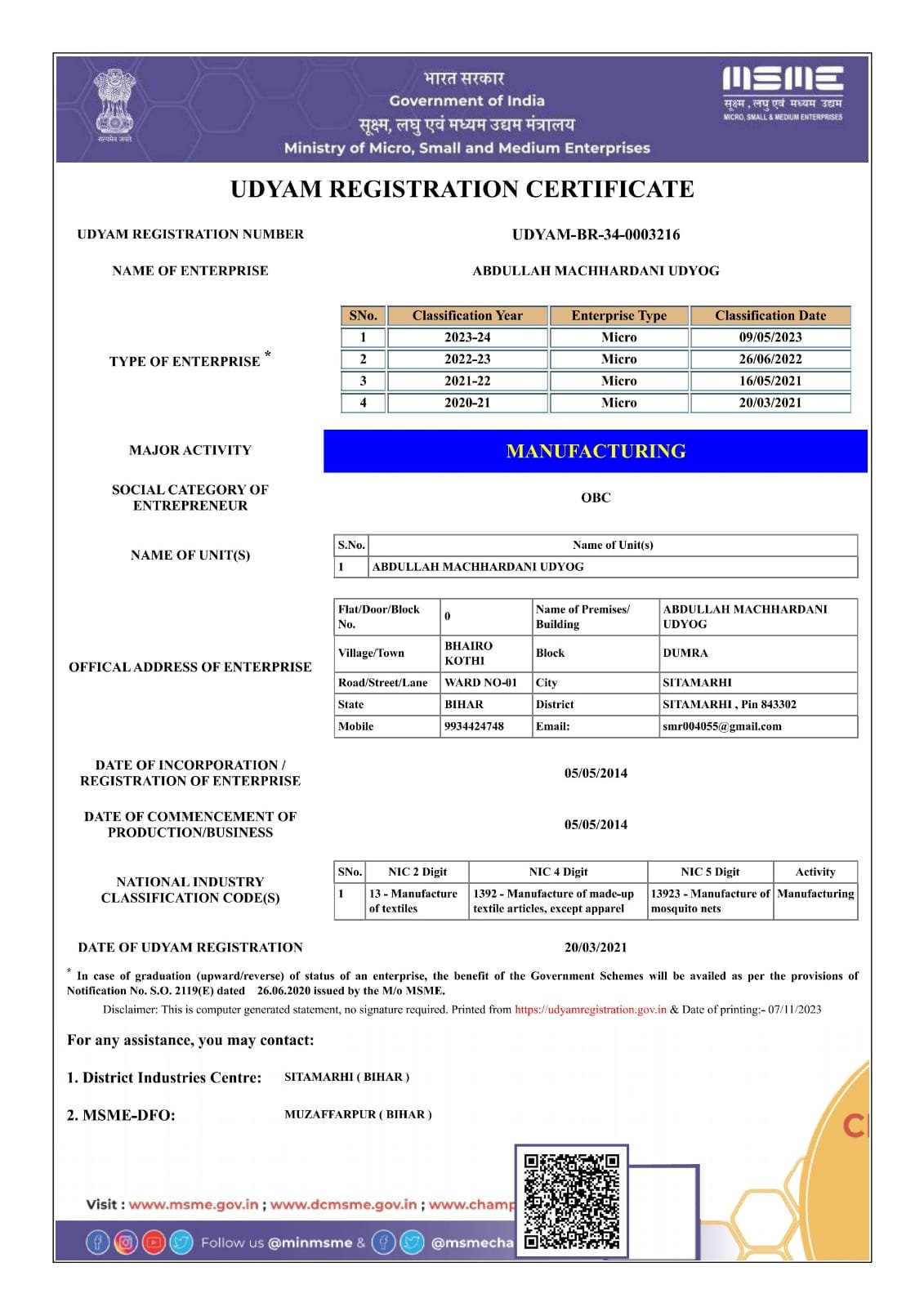 Upload Business Registration Document (For eg:- MSME Reg certificate for MSME unit/ Startup Certificate for Startups) (In case of artisans/weavers kindly upload artisan/weaver card copy)Upload Business Registration Document (For eg:- MSME Reg certificate for MSME unit/ Startup Certificate for Startups) (In case of artisans/weavers kindly upload artisan/weaver card copy)