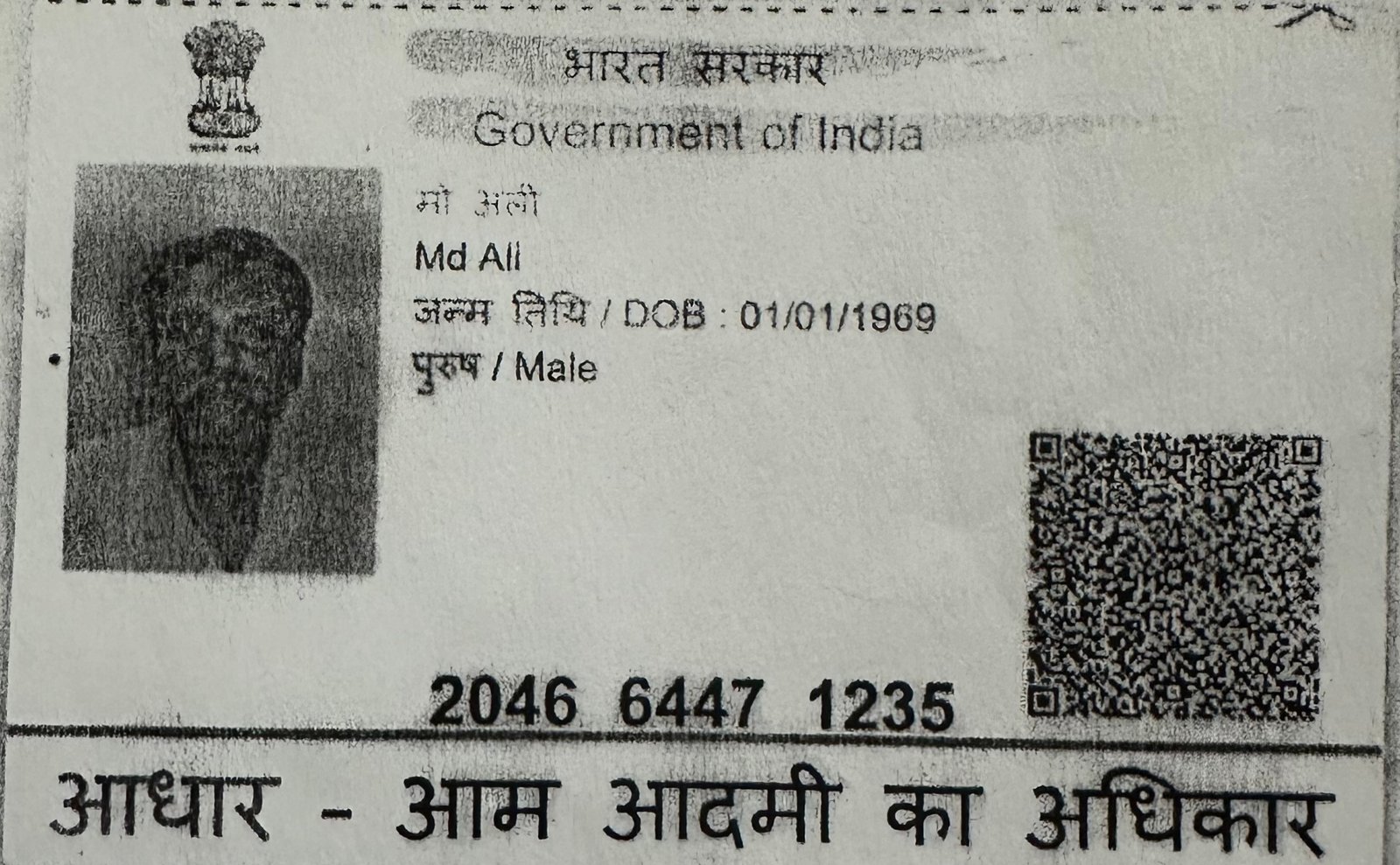 Aadhar No.2046-6447-1235