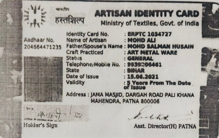 Artisan Pehchan Card No/Weaver Pehchan Card No.ERPTC1034727