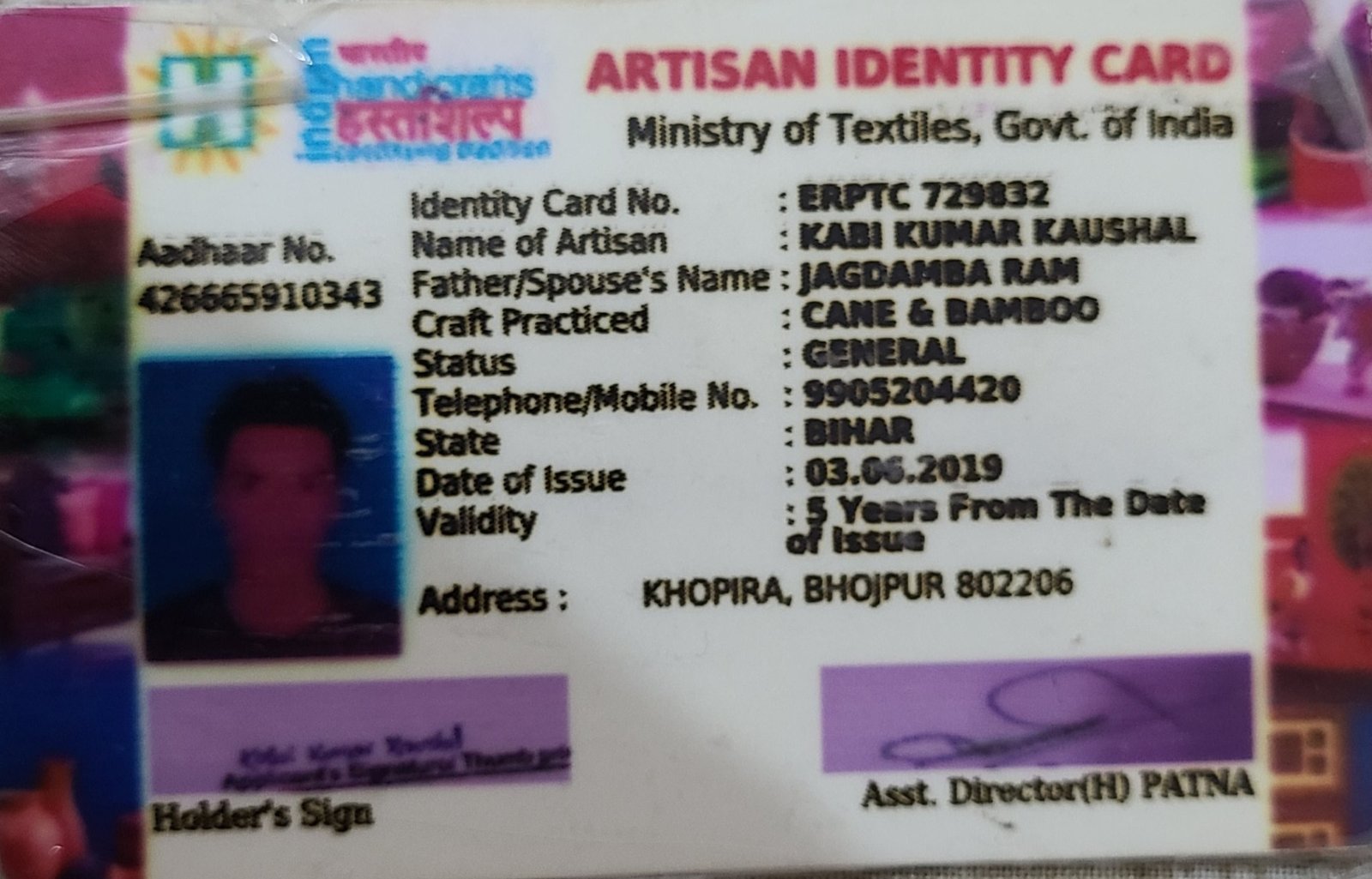 Artisan Pehchan Card No/Weaver Pehchan Card No.ERPTC729832